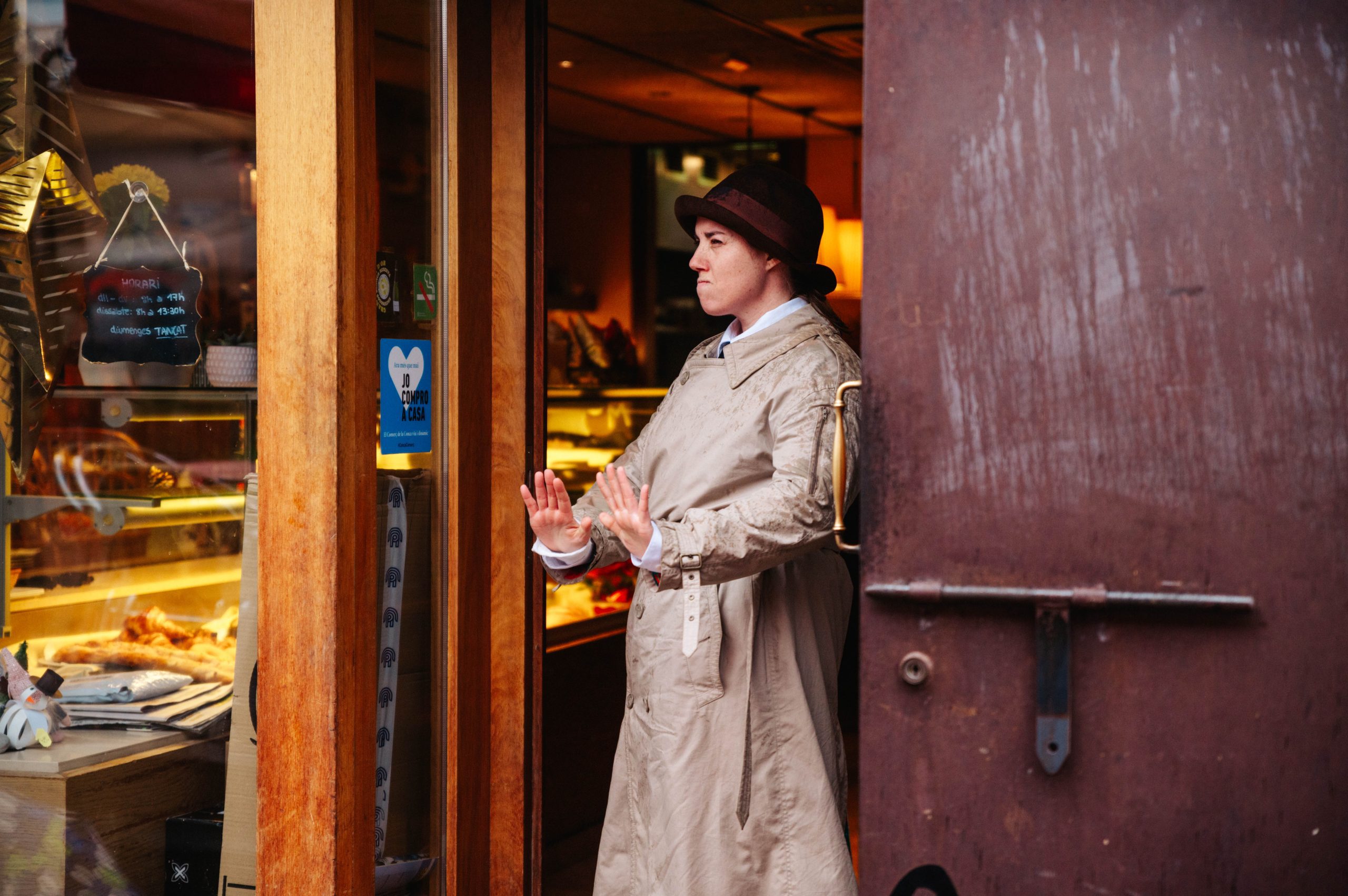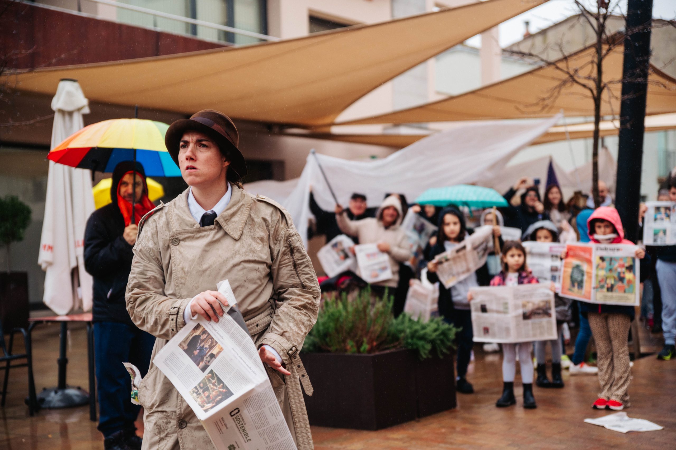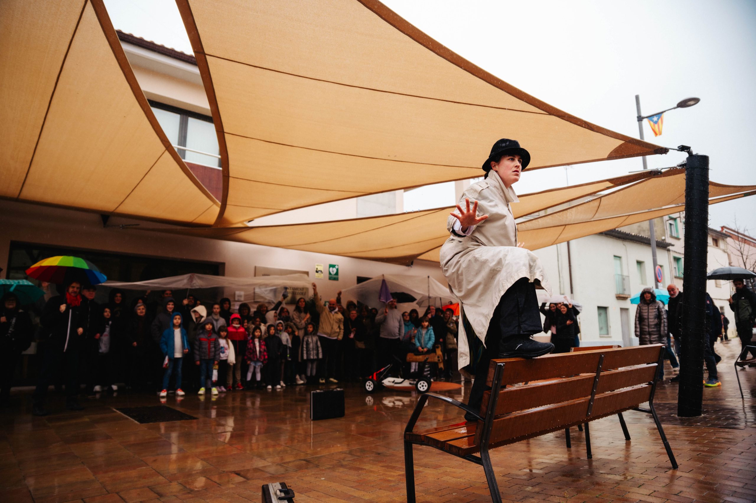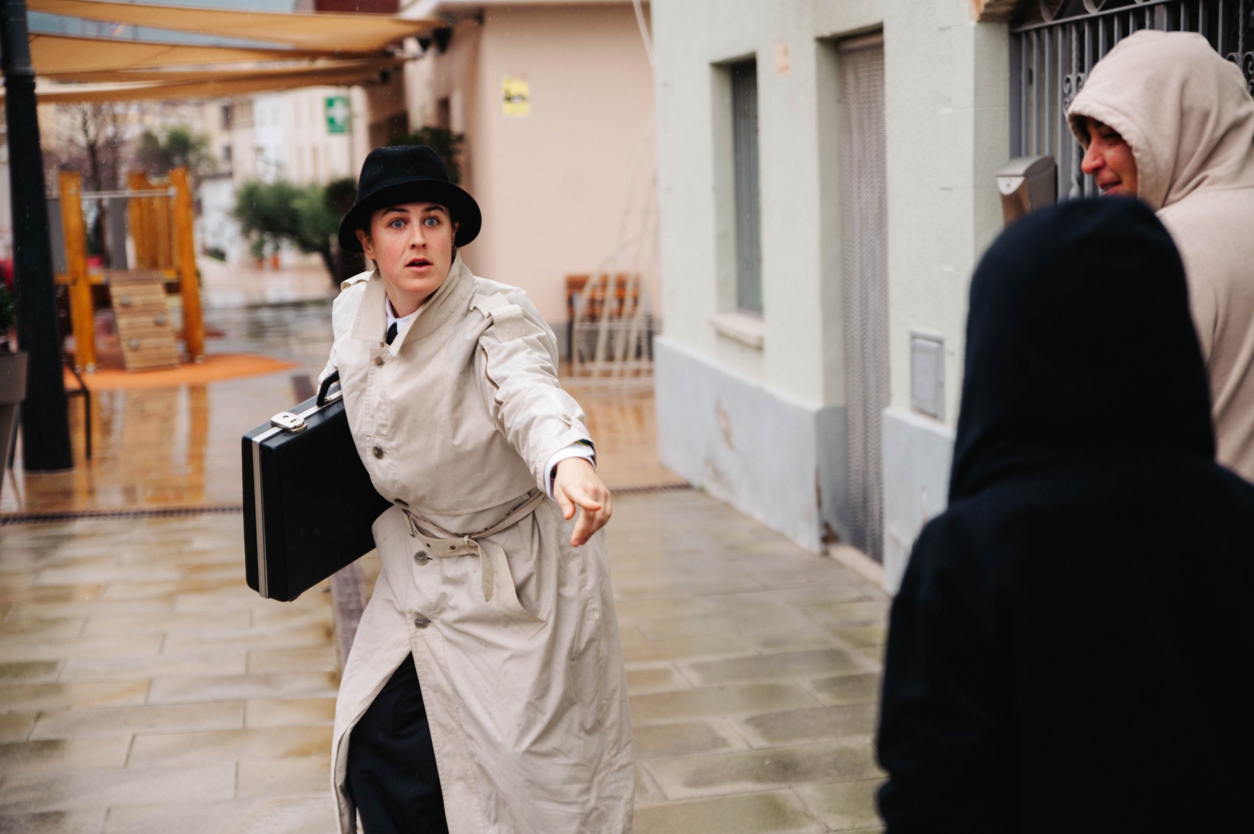 ESPIES és un espectacle de carrer de petit format, sense paraules i per a tots els públics, on juguem amb el llenguatge visual, el teatre físic i el clown.