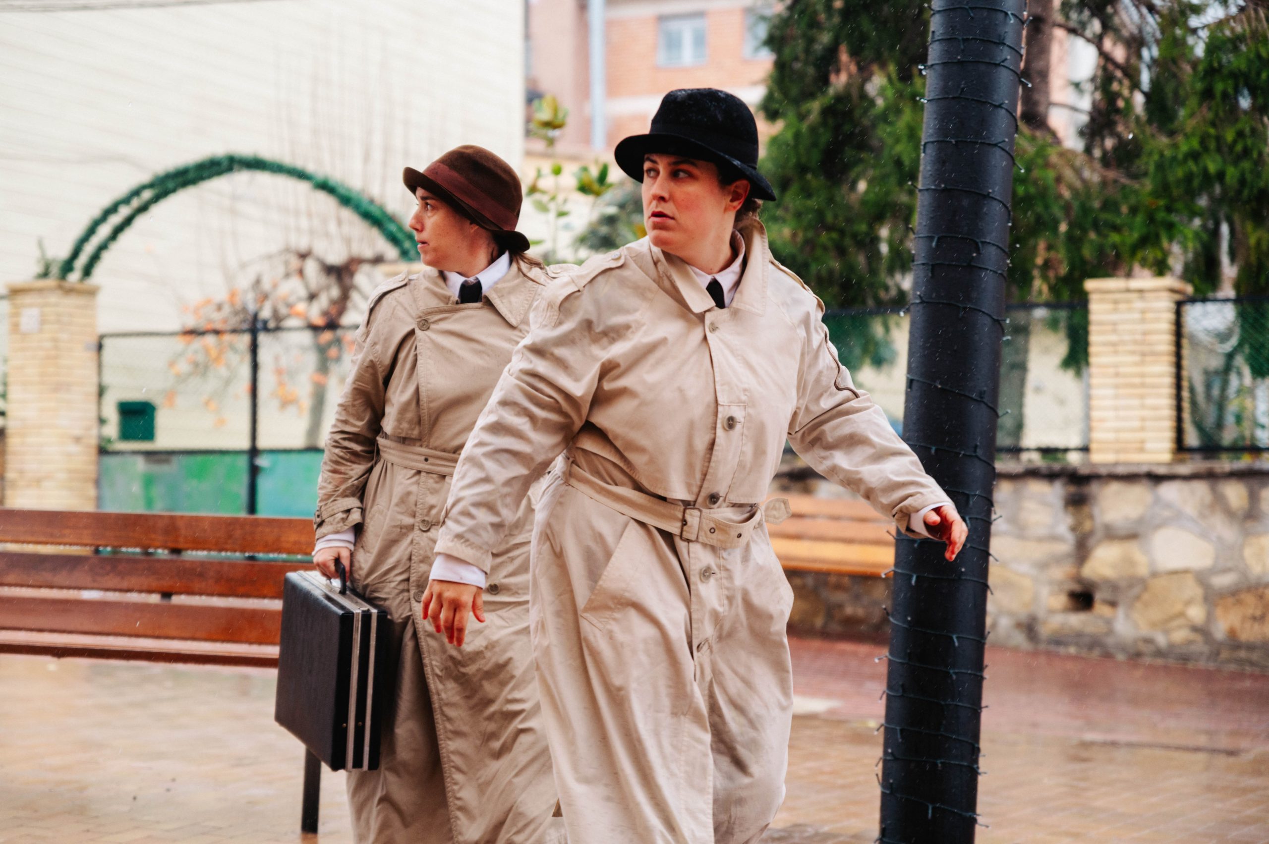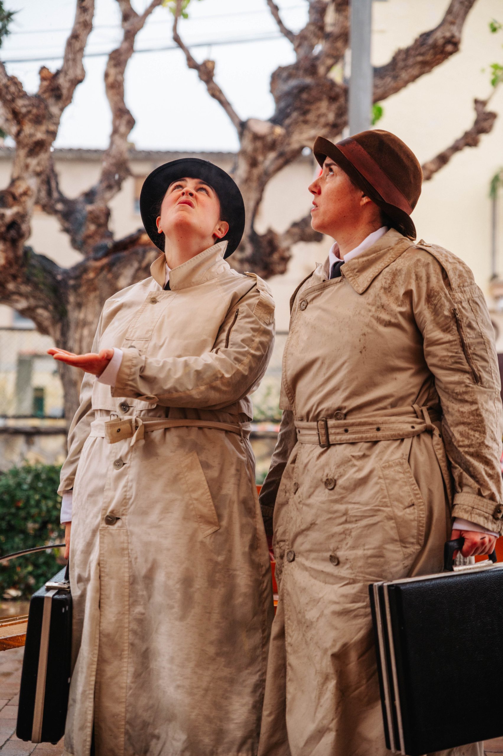 Dues espies amb una missió important, o això sembla, surten al carrer amb molta curiositat. Equipades amb objectes absurds i una imaginació desbordant, no tenen clar què investiguen, però ho inspeccionen tot i a tothom. Amb humor, complicitat i un toc de bogeria, conviden el públic a jugar i a viure una missió tan secreta que ni tan sols elles coneixen.